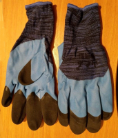 Перчатки нейлоновые с двойным вспененным латексом (синий с синим) черные пальчики